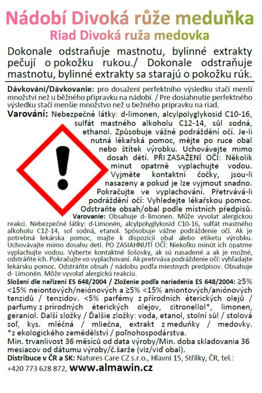 Příjemná vůně éterických olejů z růže a meduňky učiní z mytí nádobí příjemnou činnost. parfému v jednom.