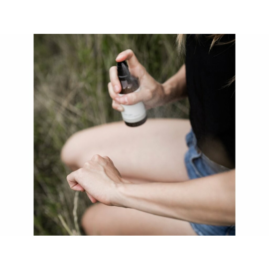 Osvěžující sprej na bázi speciální kompozice éterických olejů využívaných v tradiční aromaterapii pro své silné repelentní účinky jsme vytvořily ve spolupráci s certifikovanou, zkušenou aromaterapeutkou. Udrží od vás hmyz v uctivé vzdálenosti, ale použít ho můžete také pro zklidnění poštípané pokožky. Nádherně voní a nezanechává skvrny na oblečení.