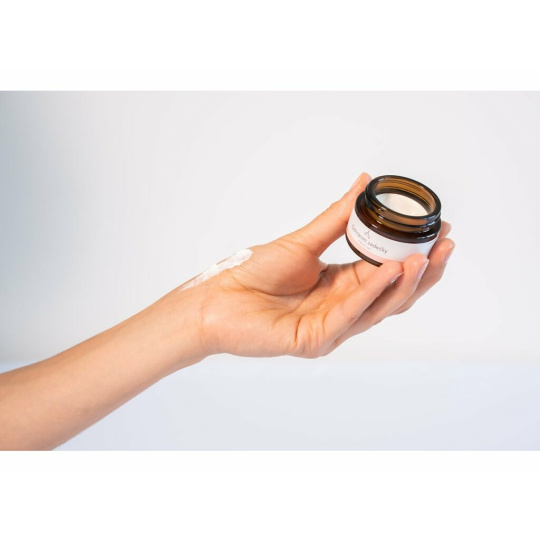 Mastičku můžete používat každý den podle potřeby i u čerstvých novorozenců. Její složení je velmi jednoduché, záměrně neobsahuje žádné aromatické ani potenciálně dráždivé složky. Je tedy vhodná i na tu nejjemnější a nejcitlivější pokožku. Základní složkou je oxid zinečnatý, přírodní minerál, který se vyznačuje svými antibakteriálními, protizánětlivými a mírně stahujícími účinky. Hojivé a ochranné účinky zinku podporuje jemný jojobový olej a čistý, certifikovaný ovčí lanolin (neobsahuje zbytky pesticidů ani jiných nechtěných látek).