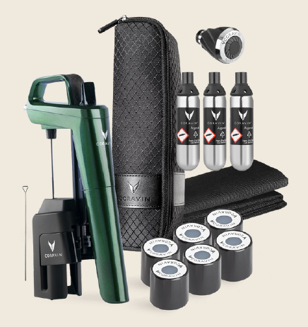 Model Six posouvá eleganci na vyšší úroveň. Představujeme prémiové zařízení Coravin z limitované edice, které spojuje rafinovanost s inovacemi. Tento elegantní tmavě zelený odstín, pečlivě vytvořený na základě úspěchu nejprodávanějších systémů, vám poskytne vše potřebné pro dokonalý zážitek z vína.