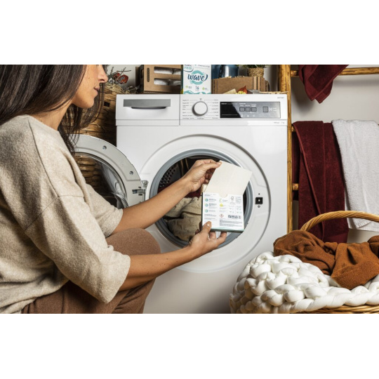 Co nás potěšilo? Wave prací proužky jsou téměř bezobalové. Jsou baleny bez jakéhokoli plastu, obal tvoří jen krabice z recyklovatelného papíru a kompostovatelný celulózový film. Zabírají mnohem méně místa – balení na 16 praní váží pouhých 50 gramů. Právě proto mají Wave prací proužky minimální dopad na životní prostředí.