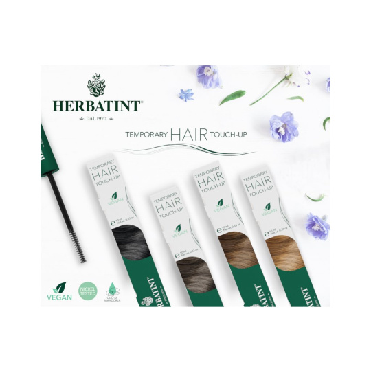 Vymývací řasenka Herbatint Hair Touch-Up je rychlým dočasným řešením pro okamžité zakrytí šedin nebo osvěžení barvy v období před kompletním barvením vašich vlasů. Použití je velice snadné a efekt je okamžitý. Jemný kartáček zajistí nanesení barvy přímo na konkrétní místo bez hrudek a bez zbytečného množství barvy. Barva zasychá během několika málo minut a vydrží do dalšího mytí vlasů. Řasenka neobsahuje syntetická barviva, je dermatologicky testovaná a také je vhodná pro vegany. V jejím složení najdete například mandlový olej, který vlasy vyživuje a hydratuje nebo sójový olej, který působí na vlasovou pokožku jako kondicionér. Šetrné složení barvy tvoří 93 % složek přírodního původu (dle ISO 16128).