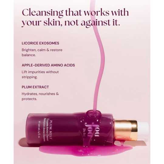 Jemný, pokožku zklidňující čisticí přípravek založený na inovativní technologii aminokyselin – bez tradičních povrchově aktivních látek, pouze čistá, bioaktivní péče. Obsahuje exosomy ze švestek a lékořice bohaté na antioxidanty, které odstraňují nečistoty, hydratují, rozjasňují a obnovují rovnováhu. Pokožka je zklidněná, osvěžená a přirozeně zářivá.