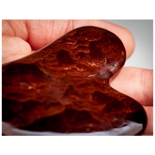 Guasha destička na obličej, určená k domácímu použití a vyrobená v České republice z z vřídlovce získaného v Karlových varech.. Tvar destičky je přizpůsoben tak, aby dokonale přilnul ke všem obličejovým partiím a ty tak mohly být správně ošetřeny.