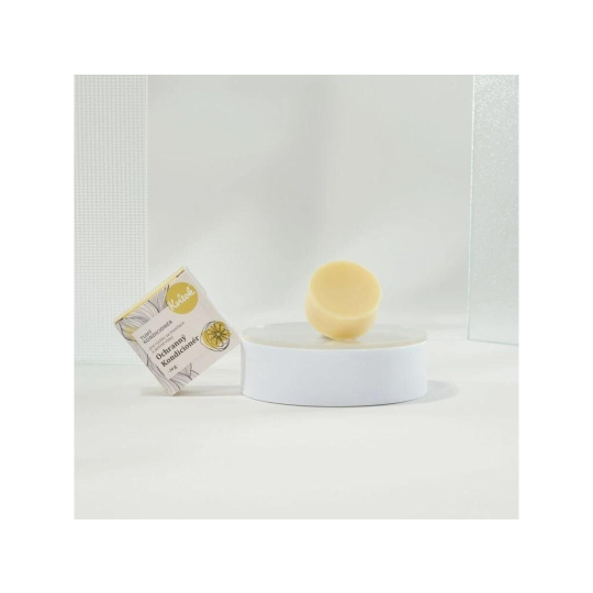 Slunce, chlad, česání, tření ručníkem, barvení, žehlení, fénování, tvrdá voda... Všechny tyto věci poškozují naše vlasy a způsobují jejich řídnutí. Řídnutí vlasů však nastává i přirozeně. Proto je nutné je chránit před nepříznivými vnějšími vlivy a tomuto procesu co nejvíce předcházet. Tento pevný kondicionér je lehčí verzí vhodnou pro jemné, tenké, rovné a rychle mastné vlasy, protože maz prochází tímto typem vlasů mnohem snadněji a rychleji. Kondicionéry nemají vliv na produkci mazu, takže pokud máte problém s nadměrnou produkcí mazu, zkuste vyloučit agresivní odmašťující povrchově aktivní látky (např. SLS, SLES) a přidat do péče o vlasy produkty (např. olejová séra), které podporují zdravou produkci ochranného mazu. Tento kondicionér je skvělou alternativou k běžným kondicionérům, která je méně odpadní, veganská a šetrná k životnímu prostředí.