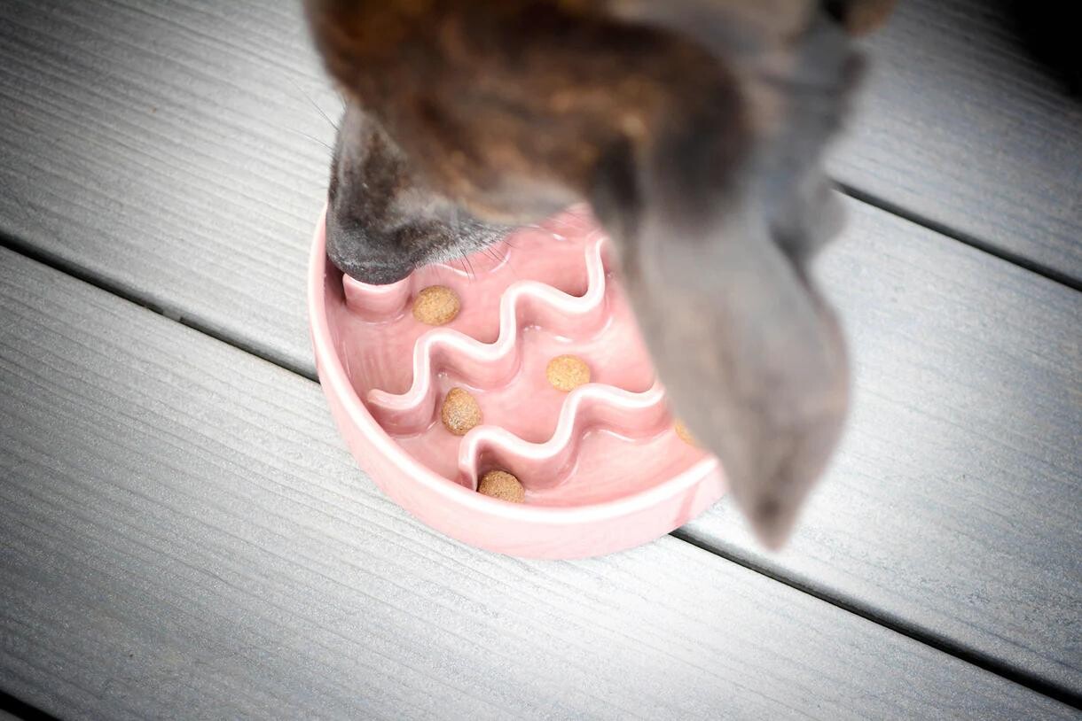 • Pomáhá předcházet torzi žaludku: Zpomalení příjmu potravy předchází rizikům spojených s hltáním stravy a zalykáním.