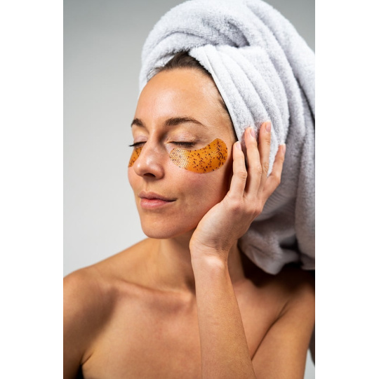 Použití: Odstraňte fólie a přiložte masku na vyčištěnou a odlíčenou pokožku pod oko tak, aby širší část masky směřovala k vnějšímu koutku oka (na etiketě je znázorněno, na které místo byste měli masku aplikovat). Nechte působit 15-20 minut a po odstranění masky jemně vmasírujte přebytečné sérum do pokožky. Neoplachujte. Použitou masku zahoďte. Používejte 2-3 krát týdně, případně i častěji dle potřeby.
