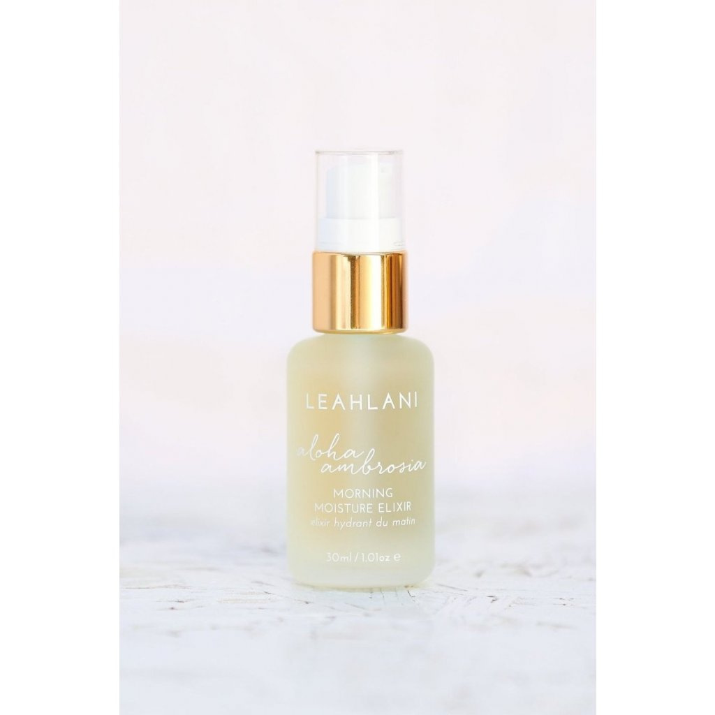 Aloha Ambrosia je ranní elixír s perfektní souhrou vůně a luxusního složení. Pleť vyživuje, chrání a drží dokonale hydratovanou, zároveň dodává zářivý a hebký vzhled. Výrobky Leahlani Skincare jsou vyráběny čerstvé v malých dávkách z vysoce kvalitních organických divoce rostoucích plodin, z místních havajských ingrediencí. Jsou 100% bez chemických složek, syntetických barviv a vonných látek, samozřejmostí je, že všechny produkty nejsou testovány na zvířatech.