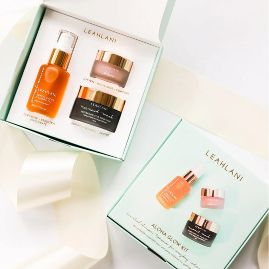 Luxusní tříkrokový beauty rituál s mini verzemi nejoblíbenějších produktů od Leahlani v péči o pleť. Dokonale sestavené botanické vzorce produktů v sadě Aloha Glow Kit společně čistí, hydratují a vyživují pokožku a podtrhávají přirozenost krásu pleti.