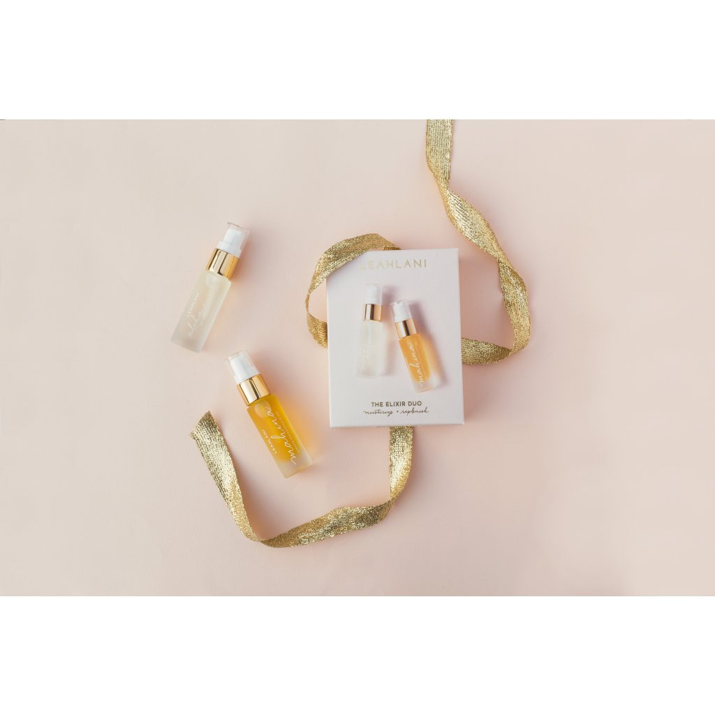 Nádherná sada Elixir Duo obsahuje cestovní balení Aloha Ambrosia ranní hydratační elixír a Mahina Evening večerní hluboce vyživující elixír, které jsou krásně zabaleny do osobitého stylu kolekce Leahlani. Sada je vhodná pro všechny milovnice kosmetiky Leahlani, i ty, které si chtějí produkty teprve vyzkoušet. Rozjasňující a balanční sérum v balení 2 x 15 ml je ideální na cestovní. Výrobky Leahlani Skincare jsou vyráběny čerstvé v malých dávkách z vysoce kvalitních organických divoce rostoucích plodin, z místních havajských ingrediencí. Jsou 100% bez chemických složek, syntetických barviv a vonných látek, samozřejmostí je, že všechny produkty nejsou testovány na zvířatech.