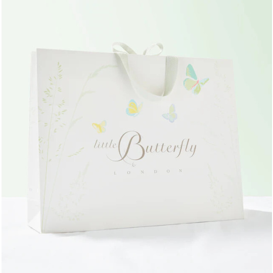 Čtyři produkty péče o pleť pro nejmenší jsou prezentovány v úžasné dárkové krabičce s potiskem trávy uvnitř a lesklými motýly na vnější straně, která je převázána krásně navrženou bavlněnou stuhou. Pro větší stylovost je krabička dodávána s luxusní značkovou taškou.
