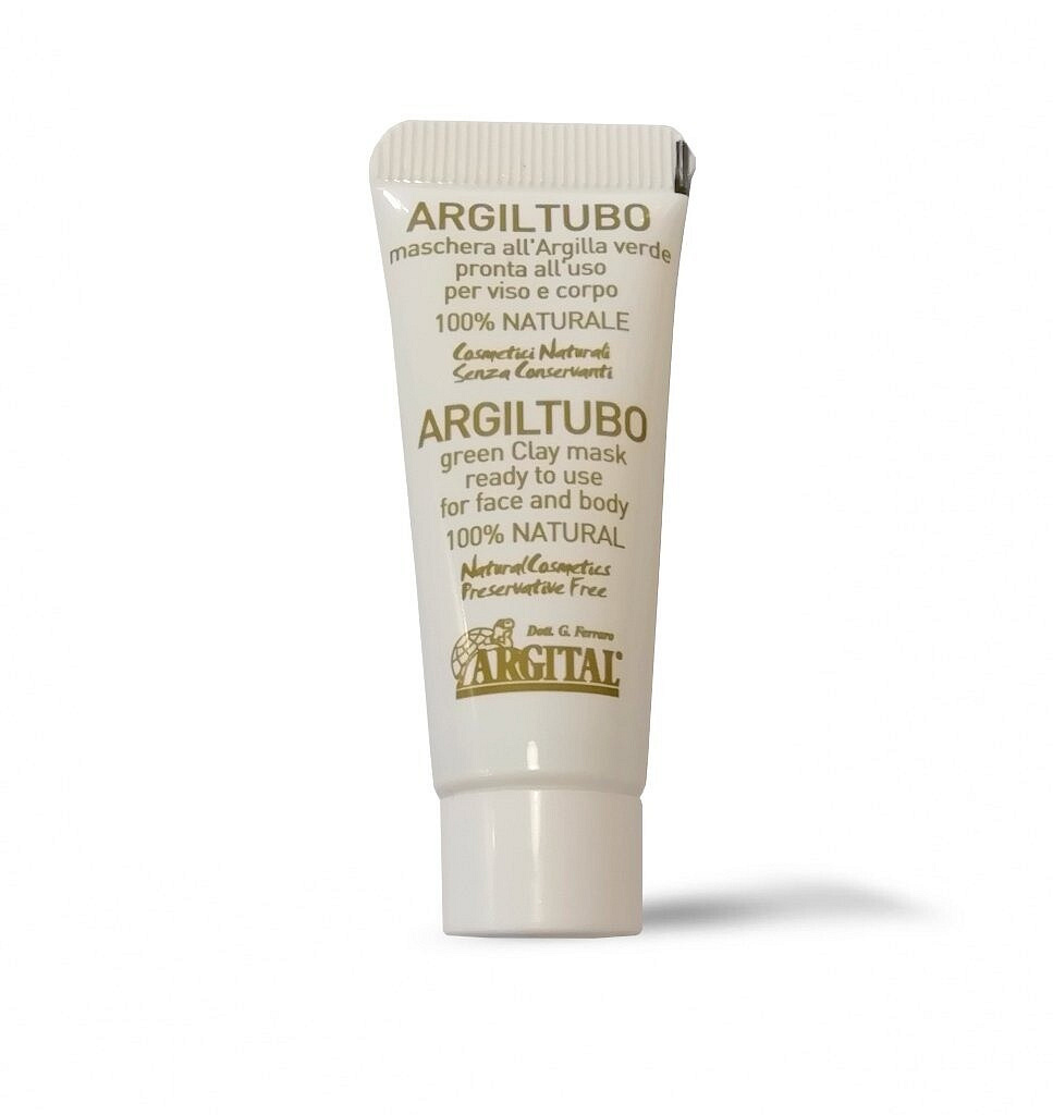 Maska ze zeleného jílu "ARGILTUBO" je téměř univerzálním přírodním přípravkem na péči o pleť obličeje, pokožku těla i vlasy. Má výrazný omlazující účinek, působí proti projevům stárnutí pleti, zlepšuje její elasticitu, tonizuje ji a čistí.
