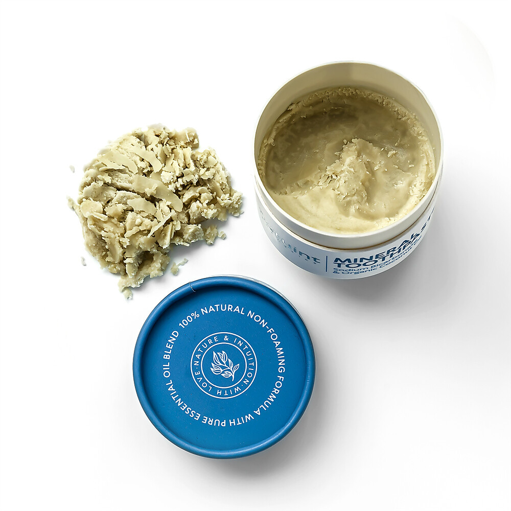 Sodium Bicarbonate (Jedlá soda), Cocos Nucifera Oil (Kokosový olej organický), Cocos Nucifera Oil (Kokosový olej extra panenský), Triticum Vulgare Germ Oil (Olej z pšeničných klíčků), Prunus Amygdalus Dulcis Oil (Mandlový olej), Copernicia Cerifera (carnauba) wax (Karnaubský vosk), Eugenia Caryophyllata Oil (Hřebíčková silice), Rosmarinus Officinalis Leaf Extract (Rozmarýnový extrakt), Illicium Verum Fruit Oil (Badyánový esenciální olej), Citrus Limon Peel Oil (Esenciální olej z citronu), Cinnamomum Zeylanicum (Cinnamon) Leaf Oil (Skořicový esenciální olej), Mentha Spicata Oil (Silice máta klasnatá).