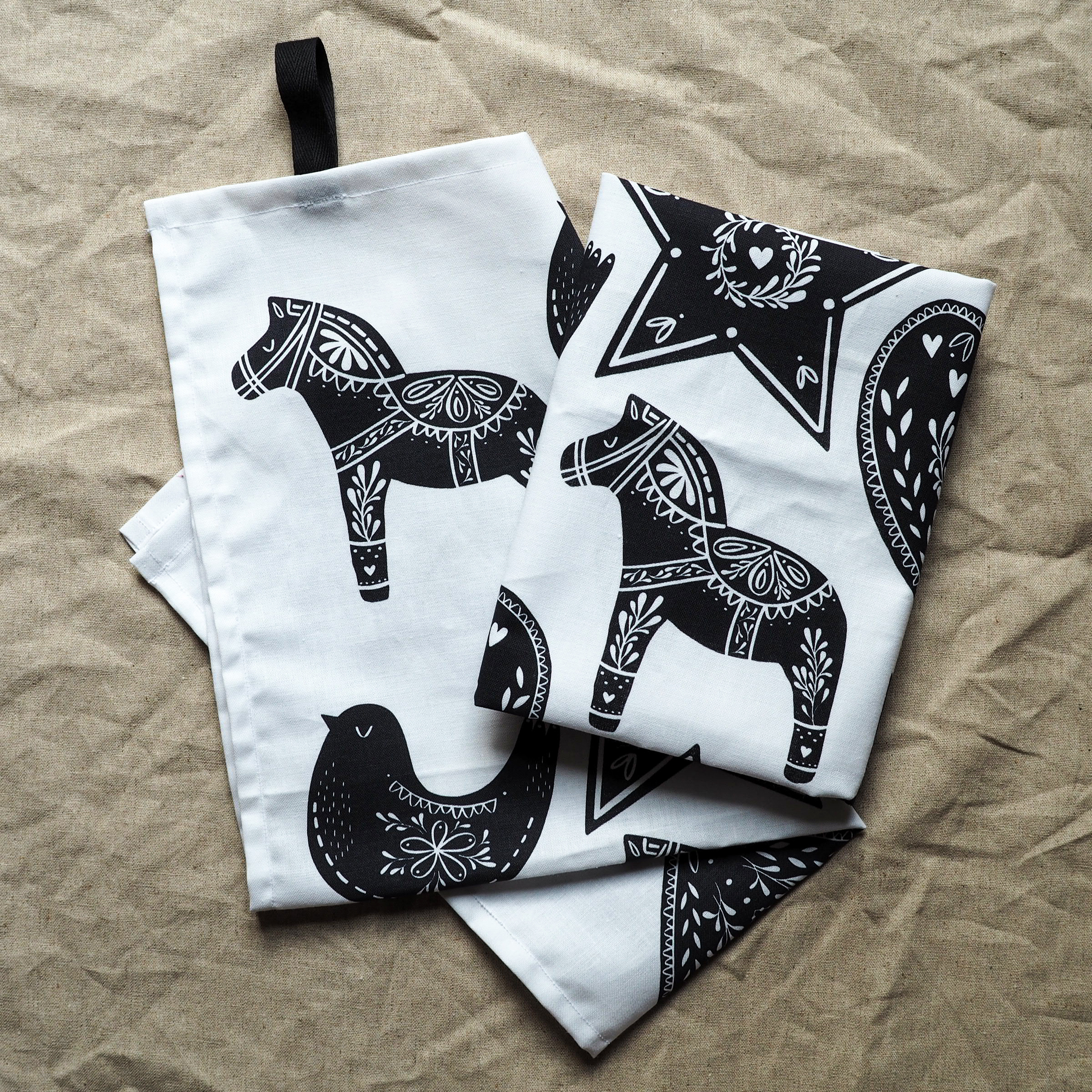 Utěrky jsou vyrobené metodou sítotisku, potisknuté v české dílně. Motiv je vytvořen dle originálního návrhu. Následně jsou utěrky doma ušité, z bavlněného plátna v bílé barvě a s láskou zabalené.