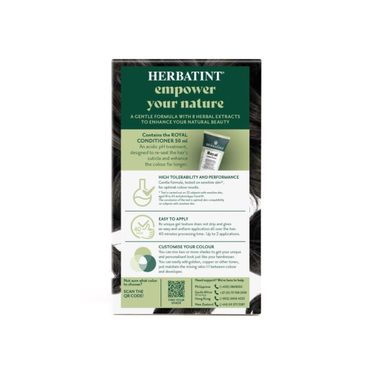 Barva dodá vlasům intenzivní barvu a lesk. Vlasy vypadají svěže, jsou zregenerované, hedvábně hladké a posílené. Díky gelové konzistenci má barva velmi jednoduchou aplikaci a je zcela bez zápachu. Celý proces barvení nezabere více jak 40 minut. Navíc Herbatint je netestuje své produkty na zvířatech a je také vhodný pro vegany. Na našem blogu se můžete podívat na vzorníček všech barev, které nabízíme v e-shopu. Nezapomeňte, že výsledná barva po obarvení nemusí být vždy totožná s barvou na krabičce. Záleží totiž na původní barvě vlasů, geneticky daném pigmentu ve struktuře Vašich vlasů, který se nemusí ukázat v přirozené barvě vlasů, ale některé Herbatint barvy ho mohou zvýraznit; dále na aktuální barvě (tzn. jaká barva byla aplikovaná před Herbatintem), nebo na tom, jestli máte odrosty, šediny nebo melír.