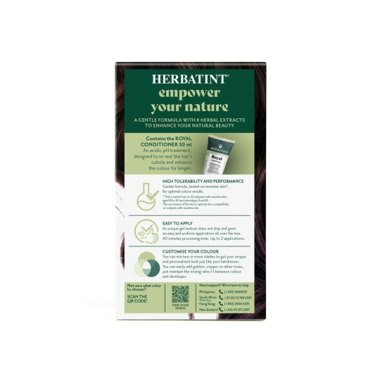 Barva dodá vlasům intenzivní barvu a lesk. Vlasy vypadají svěže, jsou zregenerované, hedvábně hladké a posílené. Díky gelové konzistenci má barva velmi jednoduchou aplikaci a je zcela bez zápachu. Celý proces barvení nezabere více než 40 minut. Navíc Herbatint netestuje své produkty na zvířatech a je také vhodný pro vegany. Na našem blogu se můžete podívat na vzorníček všech barev, které nabízíme v e-shopu. Nezapomeňte, že výsledná barva po obarvení nemusí být vždy totožná s barvou na krabičce. Záleží na původní barvě vlasů, geneticky daném pigmentu ve struktuře Vašich vlasů, který se nemusí ukázat v přirozené barvě vlasů, ale některé Herbatint barvy ho mohou zvýraznit; dále na vaší aktuální barvě (tzn. jaká barva byla aplikovaná před Herbatintem), nebo na tom, jestli máte odrosty, šediny nebo melír.