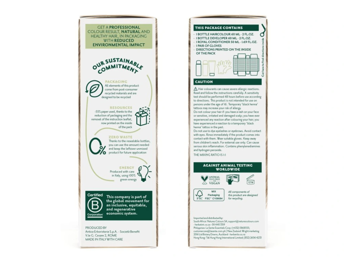 Inovované balení: menší krabička, ale větší obsah! O 55 % méně použitého papíru ve srovnání s předchozím balením díky zmenšené velikosti krabičky a odstranění letáku. Návod nyní najdete vytištěný na vnitřní straně krabičky. Místo vzorků najdete v balení 50ml Royal kondicionér, který díky svému kyselému pH vlas uzavře a zvýrazní barvu pro dlouhotrvající lesk.