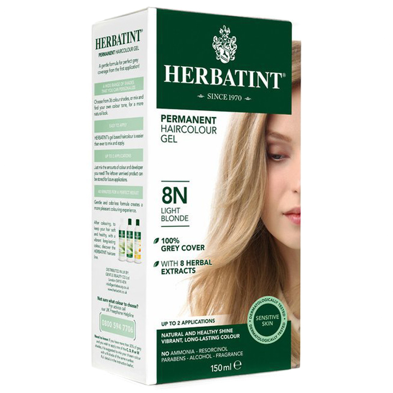 Permanentní barva na vlasy v odstínu Světlé blond, obohacená o výtažky z osmi bylin, představuje přírodnější alternativu barvení vlasů s dlouhotrvajícím efektem, 100% krytím šedin a současnou péčí o vlasy a vlasovou pokožku. Bez amoniaku, resorcinolu, alkoholu, parabenů, parfemace, s velice nízkou koncentrací peroxidu. Barvy jsou dermatologicky testované na citlivou pokožku a při aplikaci jsou zcela bez zápachu. Barvy odstínové řady N, tj. přirozené (přírodní) odstíny od 1N do 8N kryjí 100% šedivé vlasy už při první aplikaci. Odstíny 9N a 10N mají velmi nízkou koncentraci barevných pigmentů, proto musí být smíchány s malým množstvím odstínu 8N, aby bylo dosaženo co nejlepšího krytí šedivých vlasů. Více o barvení šedivých vlasů si můžete přečíst v článku na našem blogu.