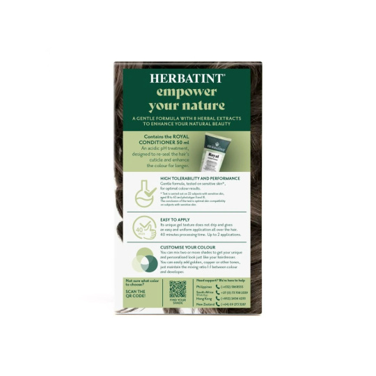 Barva dodá vlasům intenzivní barvu a lesk. Vlasy vypadají svěže, jsou zregenerované, hedvábně hladké a posílené. Díky gelové konzistenci má barva velmi jednoduchou aplikaci a je zcela bez zápachu. Celý proces barvení nezabere více než 40 minut. Navíc Herbatint netestuje své produkty na zvířatech a je také vhodný pro vegany. Na našem blogu se můžete podívat na vzorníček všech barev, které nabízíme v e-shopu. Nezapomeňte, že výsledná barva po obarvení nemusí být vždy totožná s barvou na krabičce. Záleží na původní barvě vlasů, geneticky daném pigmentu ve struktuře Vašich vlasů, který se nemusí ukázat v přirozené barvě vlasů, ale některé Herbatint barvy ho mohou zvýraznit; dále na aktuální barvě (tzn. jaká barva byla aplikovaná před Herbatintem), nebo na tom, jestli máte odrosty, šediny nebo melír.