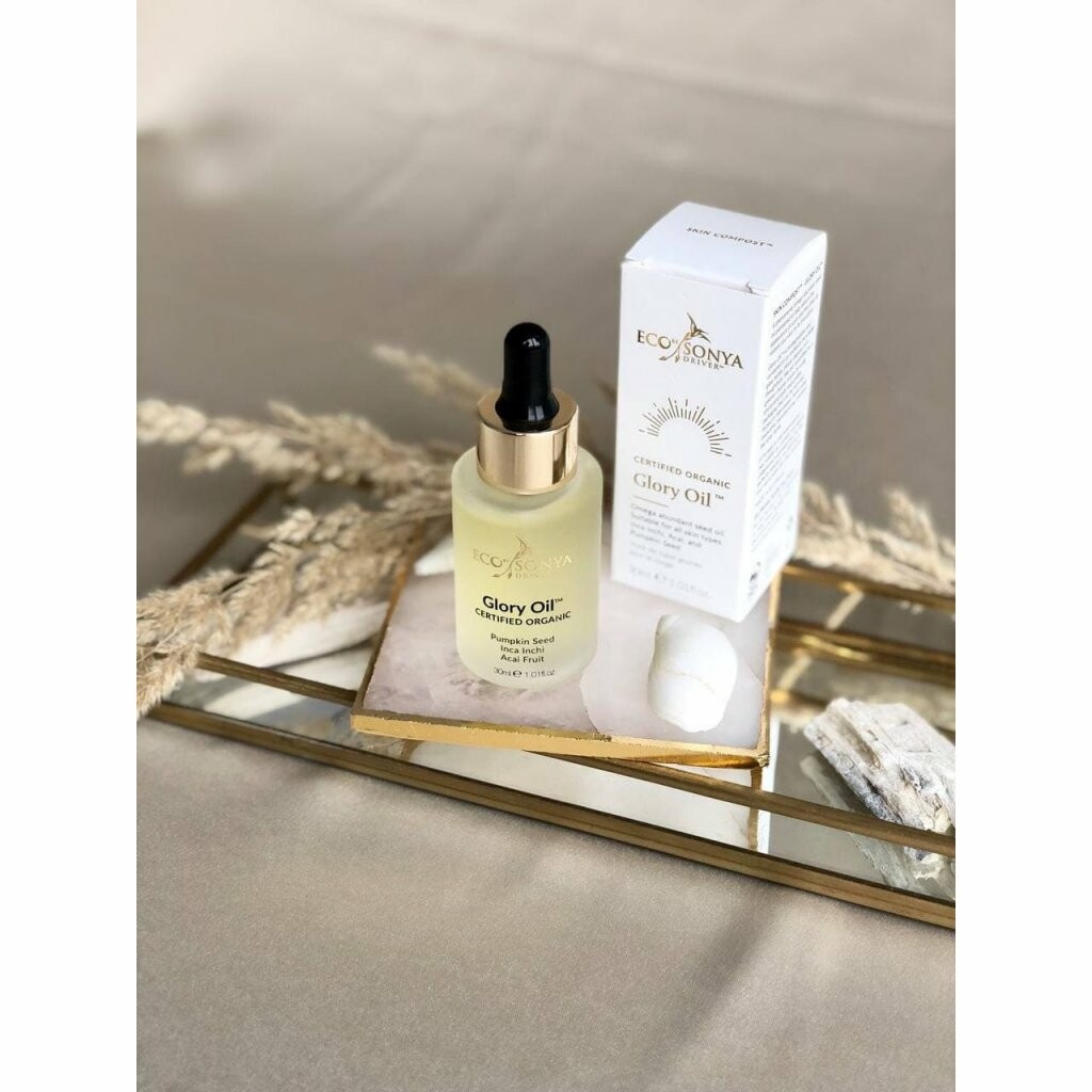 Glory Oil jako druhý produkt řady Organic Skin Care od Eco by Sonya využívá fenomenální hojivé účinky organických olejů ze semen, které spolu v kombinaci pleť léčí, zklidňují, snižují známky stárnutí a pomáhají obnovit rovnováhu vlhkosti pokožky.