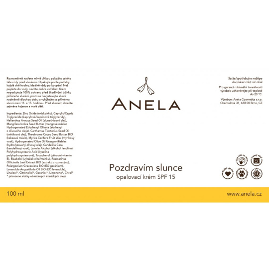 Anela Pozdravím slunce opalovací krém SPF 15 5 ml