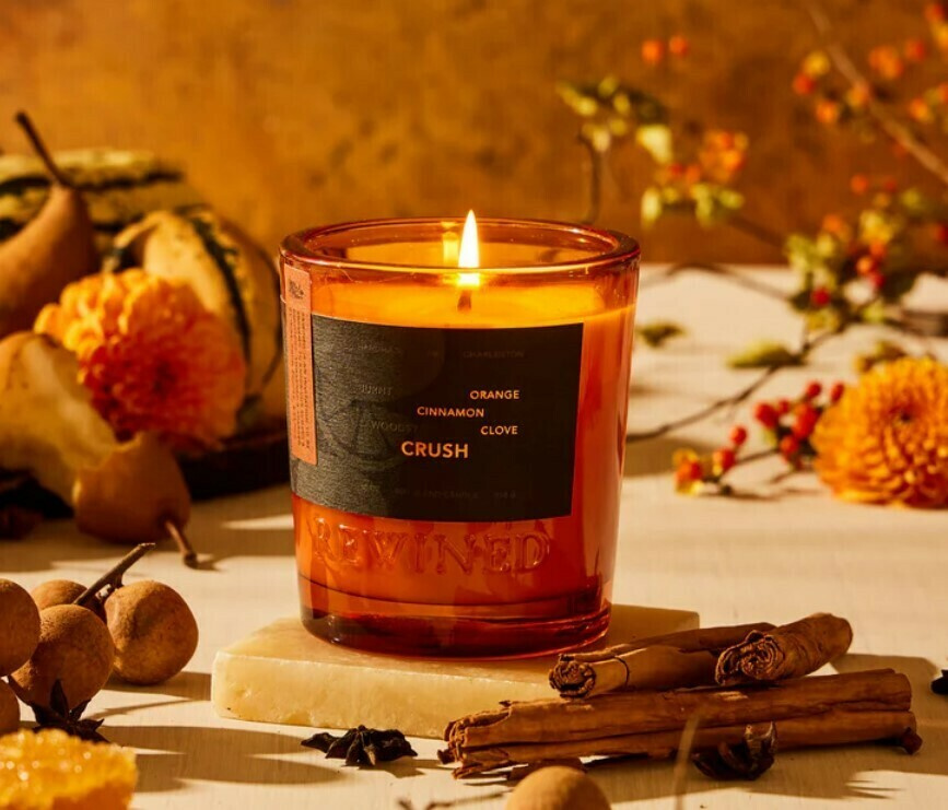 Všechny dobré věci vyžadují čas. Příroda odměňuje trpělivost obětavých srdcí hojnou úrodou. Svíčka Crush umocňuje tento čas hojnosti živou citrusovou vůní spáleného pomeranče, která je dvojnásob dekadentní díky teplu sladké, dřevité skořice a pikantního hřebíčku. Svíčka je dostupná ve dvou velikostech 170 g a 283 g.