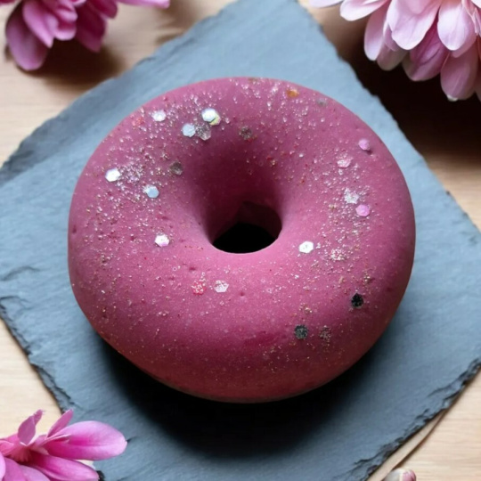 Vzhled: Mýdlo má realistický tvar donutu s nádhernou růžovo-bílou polevou, která připomíná skutečné cukrové pochoutky.