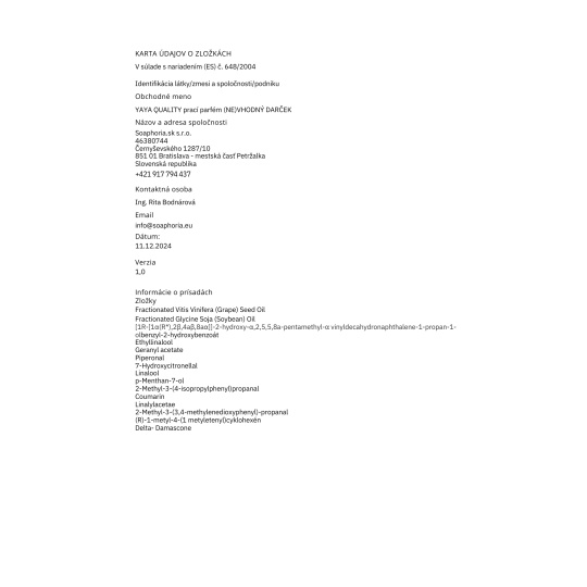 Soaphoria.sk s.r.o., Černyševského 10 851 01 Bratislava, Slovensko, info@soaphoria.eu
