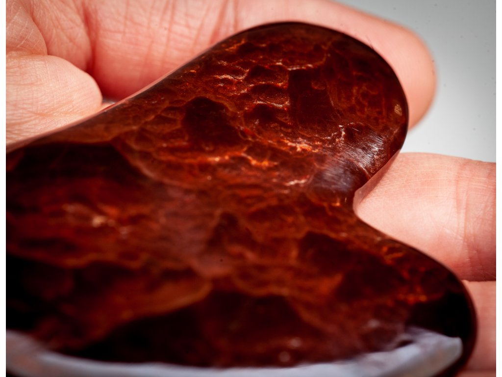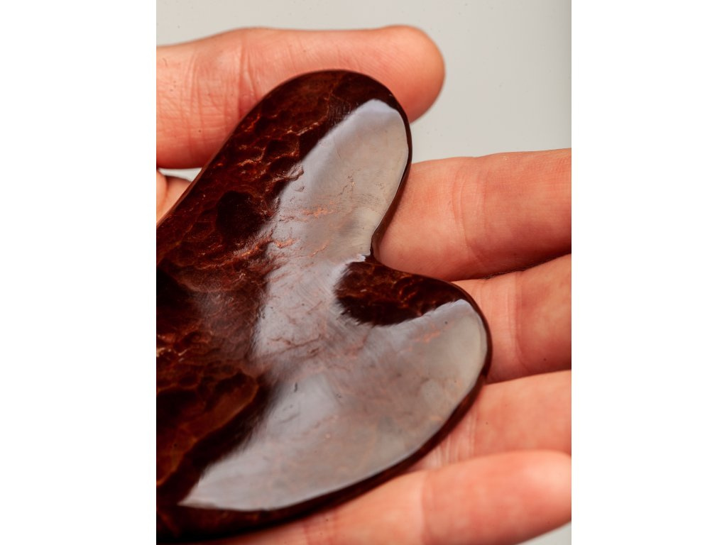 Guasha destička na obličej, určená k domácímu použití a vyrobená v České republice z z vřídlovce získaného v Karlových varech.. Tvar destičky je přizpůsoben tak, aby dokonale přilnul ke všem obličejovým partiím a ty tak mohly být správně ošetřeny.