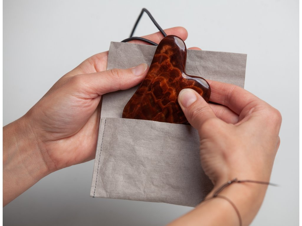 Opracovaný kámen je šetrně zabalen do biofroté peřinky, kterou můžete dále využít. Například k odlíčení pleti.