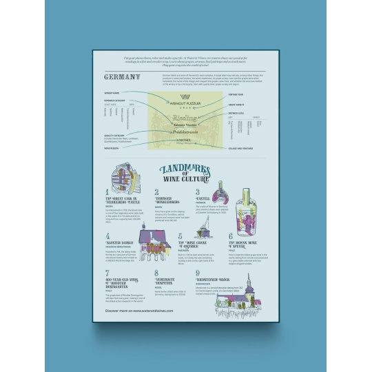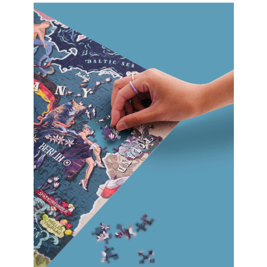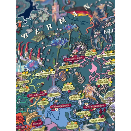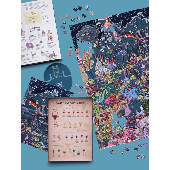 Puzzle s tématikou německých vinařských oblastí a klíčových odrůd typických právě pro Německo. Krabička obsahuje také profily jednotlivých odrůd, jejich charakteristické vůně a chutě se spoustou tipů na snoubení s jídlem! Ilustrace byly nejprve ručně nakresleny a stojí za nimi Nikita Kulikov, poté pečlivě zkontrolovány s pomocí nejlepších světových someliérů.