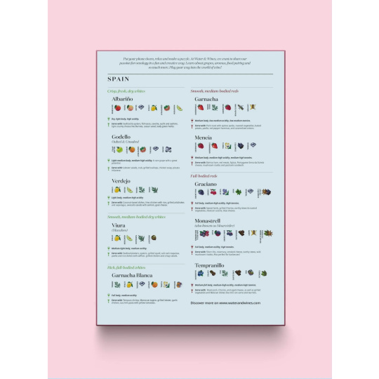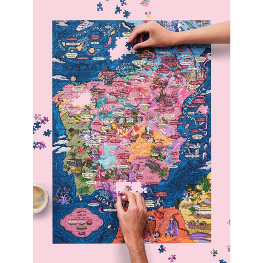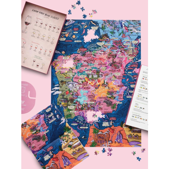 Puzzle s tématikou španělských vinařských oblastí a klíčových odrůd typických právě pro Španělsko. Krabička obsahuje také profily jednotlivých odrůd, jejich charakteristické vůně a chutě se spoustou tipů na snoubení s jídlem! Ilustrace byly nejprve ručně nakresleny a stojí za nimi Nikita Kulikov, poté pečlivě zkontrolovány s pomocí nejlepších světových someliérů.