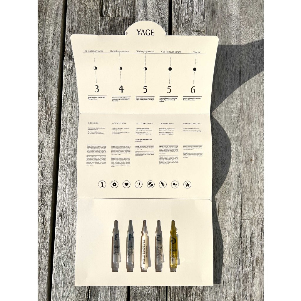 Yage sada vzorků bestsellerů obsahuje tonikum, hydratační esenci, denní a noční sérum a noční pleťový olej. Tato kolekce Vám umožní vyzkoušet 5 klíčových produktů Yage, baleno v kartonové obálce.