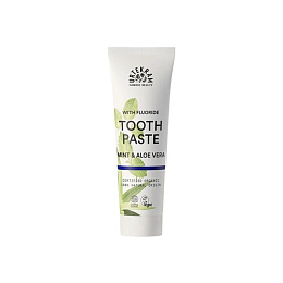 Zubní pasta Urtekram s fluorem a mátou pečuje o celou ústní dutinu za pomoci křídy a esenciálních olejů z máty. Díky nulovému obsahu sulfátů pasta pění velice málo, ale přesto dokáže chrup ochránit před vznikem zubního kazu i usazováním plaku. Éterické oleje z máty působí antibakteriálně, chrání celá ústa a současně osvěžují dech po dlouhou dobu. Zubní pasta využívá účinků fluoridu, který výrazně eliminuje riziko vzniku zubního kazu, a křídy, která mírně pění a z chrupu lehce obrušuje usazený zubní plak. O svěží příjemnou chuť se postará kombinace éterických olejů z máty peprné a mentolu, která příjemně chutná, osvěží dech a navíc působí antibakteriálně a pečuje o zdraví celé ústní dutiny.